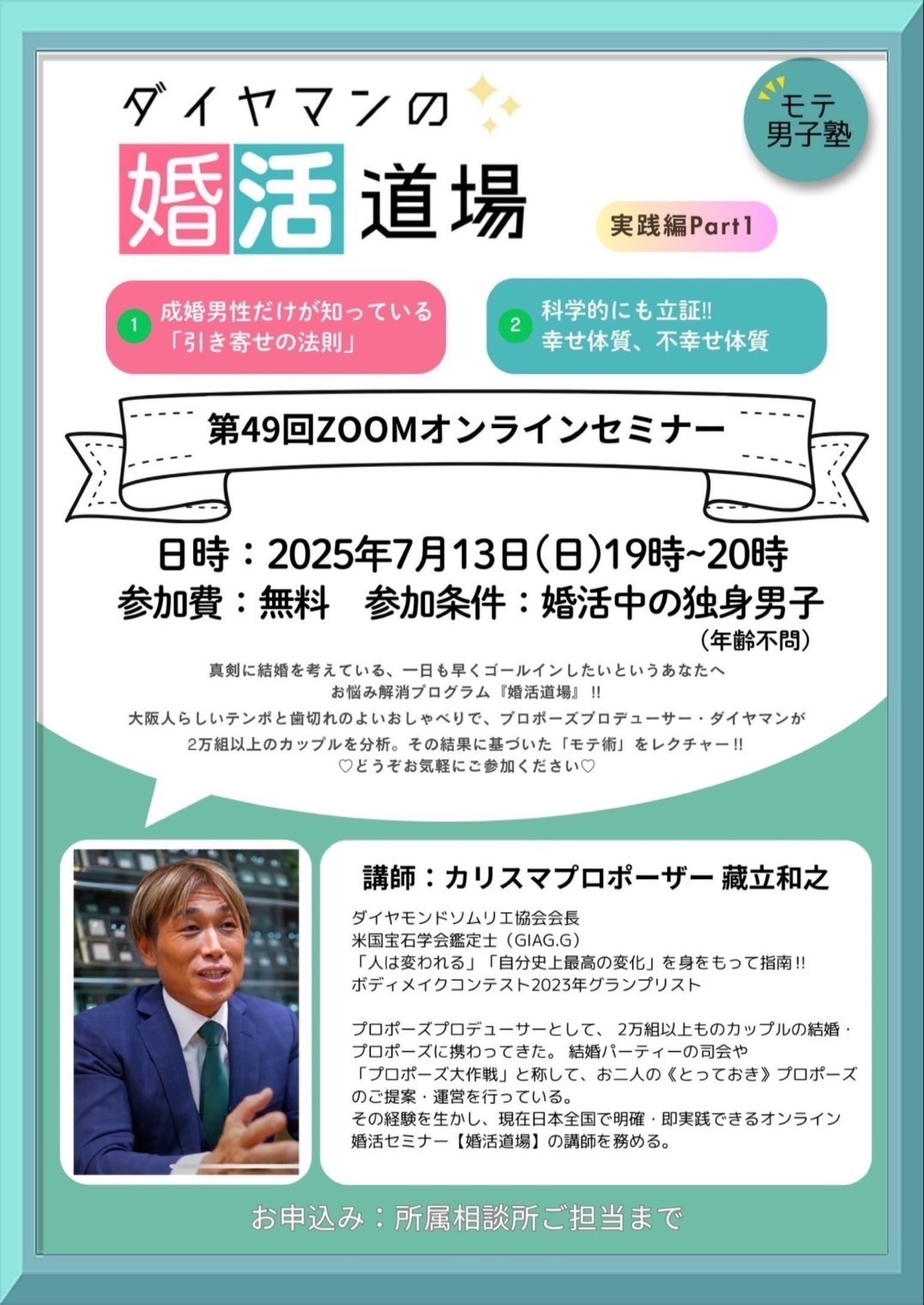 成婚男性が知っている“引き寄せの法則”とは? 人気講師ダイヤマンが語る【モテ術】をオンラインで!